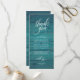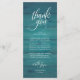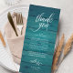 Haga de su recepción de bodas algo especial con esta elegante tarjeta de agradecimiento de bodas, diseñada para ser colocada en el entorno de cada invitado. Con un diseño minimalista moderno con letras de guión de moda, un tema verde azulado rústico de cabaña verde azul, es una manera cuidadosa de expresar gratitud a la familia y amigos por compartir su gran día. Perfecto para cenas bodas, cenas de ensayo o recepciones, esta tarjeta personalizada puede ser personalizada con sus nombres, fecha y mensaje especial. Un detalle de diseño que hace las veces de boda en la decoración de las mesas, lo que hace que los clientes tengan un gran interés en recordar la noche. Ideal para temáticas bodas modernas, rústicas o clásicas.