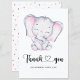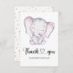 Tarjeta de agradecimiento para la ducha de bebé de elefantes rosas. Vea el enlace de la colección en esta página para ver todos los elementos coincidentes de este hermoso diseño.