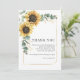 Crea una moderna tarjeta Floral Bridal Shower de agradecimiento con esta plantilla con una hermosa acuarela floral de girasol y eucalipto de la futura novia. Una tarjeta de agradecimiento después del evento principal de la futura novia deja un recuerdo duradero y es grandioso como un gran placer. CONSEJO: En la colección que aparece a continuación se pueden encontrar artículos de ducha a juego como pancartas, tapicería, etiquetas de regalo, carteles y otros productos para la ducha.