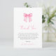 Exprese su gratitud a sus huéspedes de Baby Shower con nuestra tarjeta de agradecimiento Bow color de agua rosa, diseñada para celebrar la llegada de su pequeño con elegancia y encanto moderno. Esta tarjeta de excelente calidad presenta un delicado arco acuarela emparejado con un guión sofisticado, que representa una estética sencilla, elegante y clásica. Los toques femeninos y los elementos de coqueta lo convierten en la elección perfecta para una ducha infantil de diseño. La tarjeta también muestra un patrón de rayas de color rosa suave de bonito en la parte posterior con un bonito pequeño detalle de arco. Use el botón azul "Personalizar" para añadir su información. Diseño de Ana Garza/Kardz Studio. Si tienes alguna pregunta, por favor no dudes en contactarme a través del chat de Zazzle.