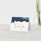 Este elegante diseño presenta un borde superior de ágata azul recortado con un purpurina de imitación dorada. Las palabras "Gracias" aparecen en el guión de escritura a mano de Relieve metalizado/purpurina falso dorado en el frente. En el interior, reemplace el texto por el texto que elija o elimine para dejar en blanco.