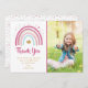 Festividad moderna de cumpleaños arco iris gracias a la carta en tonos verde azulados, rosa y un falso efecto Relieve metalizado de oro, con espacio para tu foto.