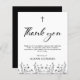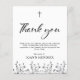 Tarjeta conmemorativa Black Floral Gracias por tu memoria Una elegante tarjeta funeraria con pequeños dibujos florales negros y una elegante cruz negra sobre todo el texto. Puede personalizar fácilmente con el botón 'PERSONALIZAR' con su propio mensaje de agradecimiento y, por supuesto, todos los demás datos. Diseñado por szdesign.