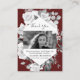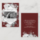 Esta elegante foto en negro Gracias por presentar un exuberante ramo de rosas blancas, una foto de tu ser querido con marco blanco, su nombre y fechas de vida con fondo rojo oscuro. La otra cara de esta Tarjeta de agradecimiento es de color rojo oscuro con rosas blancas y mensaje de agradecimiento.