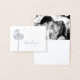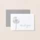Una flor de león de Relieve metalizado plateado con semillas flotantes acentúa esta carta de agradecimiento, haciéndolo perfecto, sencillo y elegante gracias. El interior de esta tarjeta tiene espacio para una foto especial, y un área dejada en blanco para su propio mensaje personal. Un sobre gris de coordinación acentúa aún más el Relieve metalizado plateado de esta tarjeta.