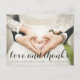 Esta tarjeta de agradecimiento a la foto de un boda muestra una gran foto de su boda con "Amor y Gracias" en texto cursivo gris oscuro y su propio mensaje en la parte posterior.