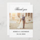 Una moderna tarjeta fotográfica de agradecimiento al boda. Un fondo blanco, texto negro. Personaliza y agrega tu foto y nota de agradecimiento.