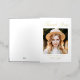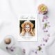 Elegante tarjeta de agradecimiento por graduación con "Gracias" en escritura de caligrafía de Relieve metalizado de oro con la foto del graduado que se muestra abajo. Personalice la tarjeta de agradecimiento de graduación con el nombre del graduado, el nombre de la escuela y el año de graduación. En el interior del Relieve metalizado dorado, la tarjeta de agradecimiento incluye espacio para un mensaje escrito a máquina o a mano.