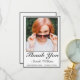 Tarjeta de agradecimiento de graduación. Elegante diseño minimalista blanco negro con marco fino. Hay más artículos disponibles en este estilo en nuestra tienda. Puede editar el diseño más adelante, cambiar el color de fondo, las fuentes y añadir texto extra haciendo clic en el enlace "personalizar más adelante".