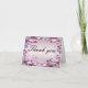flores moradas de bonito sobre un fondo morado. Esta elegante tarjeta de nota de agradecimiento de boda está en blanco dentro para que escriba a mano su nota personal, o puede agregar el tipo usando el campo proporcionado. Si lo desea en blanco, asegúrese de borrar el campo dentro de la tarjeta. Personalice la tarjeta cambiando el texto en los campos proporcionados. Puede cambiar el estilo de fuente, el tamaño y el color, así como el tipo y estilo de papel.