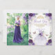 Gracias a sus invitados por venir a su quinceañera con estas elegantes tarjetas de agradecimiento. El diseño incluye un brillante vestido de purpurina lavanda adornado con elegantes rosas color agua morado y lila y una suave vegetación. Haga clic en el botón "personalizar adicional" si desea reorganizar y formatear el estilo y la ubicación del texto.