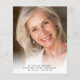 Expresar su gratitud a los amigos y familiares por su simpatía con esta tarjeta de agradecimiento. **POR FAVOR LEA ANTES DE COMPRAR** Nuestra pequeña gama de artículos de papelería de presupuesto mide 4,5" x 5,6" y se ajusta dentro de un sobre A6, que están disponibles en todo tipo de colores en su tienda de papelería local o usted puede añadir uno blanco a su pedido antes de realizar el pago. El material de cartón es blanco brillante con un acabado semi-brillante y peso de 110 libras, lo cual es adecuado para invitaciones. NO le aconsejamos que elija la opción de papel satinado ya que es un papel mucho más delgado de 80lb, que es más parecido a las páginas de revista que a las de cartón. Si prefiere una invitación clásica de tamaño 5x7 impresa en un material de 120lb con acabado mate, puede transferir este diseño a una tarjeta plana utilizando las opciones de diseño de transferencia. Las tarjetas planas no están dentro del rango de presupuesto, pero usted tiene una mayor variedad de tamaños y opciones de cartón y se envían con sobres. La forma y el tamaño más adecuados para el diseño aparecerán en las opciones de transferencia de diseño. Si realiza cambios en la forma o el tamaño o elige otro producto y el diseño está recortado de alguna manera o no aparece directamente en la página, necesitará usar el servicio de diseño activo para que alguien ajuste el diseño por usted, a menos que se sienta cómodo haciéndolo por usted mismo. No hay ninguna comprobación o intervención manual entre la colocación del pedido y la impresión, por lo que lo que ve en la pantalla es lo que se imprimirá y se le enviará. Con esto en mente, por favor, compruebe tres veces si hay algún error ortográfico o información incorrecta antes de realizar el pedido. La fotografía del modelo tiene fines ilustrativos y puede cambiarse a una de las suyas.
