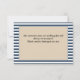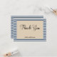 Estas "Clásicas franjas azules enmarcadas con tarjeta de agradecimiento" están diseñadas para dejar una impresión duradera en sus seres queridos mientras usted muestra su aprecio por su presencia y gestos reflexivos. El diseño limpio se puede usar para cualquier ocasión, ya sea que le agrade a los huéspedes asistir a su boda, ducha o cualquier otro evento especial, estas tarjetas ofrecen una manera versátil y elegante de hacerlo. ¡No te quedes sin el tuyo!