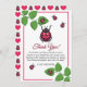 Send heartfelt thanks in the sweetest way with this charming Love Bug Ladybug Baby Shower Thank You Card. Designed to coordinate perfectly with the matching invitation, this whimsical design features the same adorable ladybug artwork, red and white color palette, and playful love-bug details that make this collection so special. Perfect for ladybug baby showers, love bug baby shower themes, garden-inspired celebrations, spring baby showers, and baby girl showers, this thank you card adds a joyful and polished finishing touch to your event. All text is fully editable, allowing you to personalize names, messages, and wording to reflect your celebration and sentiment. Whether you’re thanking guests for gifts, well wishes, or simply sharing in your special day, this design makes expressing gratitude easy and beautiful. The coordinated artwork ensures a cohesive look when paired with matching invitations, favor tags, enclosure cards, welcome signs, banners, and party décor from the Love Bug Ladybug Baby Shower Collection. Sweet, cheerful, and full of love, this ladybug thank you card is the perfect way to let friends and family know how much their support means as you prepare to welcome your little lovebug.