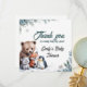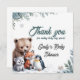 Celebra la llegada de tu pequeño copo de nieve con nuestra encantadora colección de Baby Shower Winter Woodland. Esta encantadora suite cuenta con un delicioso ilustracion acuático de un simpático cachorro de oso, zorro, lobo y pingüino que juegan juntos en una suave nevada. La suave y polvorienta paleta de colores azul y verde sabio crea un ambiente acogedor y sereno, perfecto para una celebración de invierno sin diferencias de género. Expresa tu sincera gratitud a amigos y familiares con estas adorables tarjetas de agradecimiento.