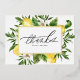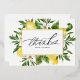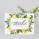 Envíe gracias con esta tarjeta de agradecimiento de Relieve metalizado de oro de personalizable. Presenta un marco acuarela de limones y flores de limón con tipografía moderna. Personalice agregando sus detalles. Esta tarjeta de agradecimiento de limón es perfecta para bodas, cumpleaños, duchas para bebés y duchas de novias.