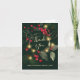 Navidades Boda Gracias Tarjeta Fotográfica. Una deliciosa corona de hojas verdes y doradas con bayas rojas y garland claro sobre un fondo verde oscuro. Añade tu imagen y texto.