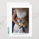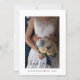 Un Boda Gracias tarjeta de foto plana. La parte delantera de la tarjeta muestra los nombres de la pareja y la fecha boda, adornada con un corazón rojo y las palabras - ¡Gracias! - en una fuente de script elegante. En el reverso se muestra una breve nota a los amigos y familiares que se puede personalizar a su gusto. Además, en la parte trasera hay un paisaje acuático de montañas y pinos. *Por favor recuerda reemplazar la foto delante de la tarjeta con tu propia foto boda en formato retrato.