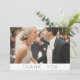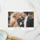 Una tarjeta de agradecimiento boda de diseño simple presenta su foto boda con GRACIAS EN una sencilla letra negra en la parte delantera. Incluya su mensaje personal de agradecimiento con los nombres de la novia y del novio en la parte posterior