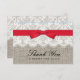 Elegante carta de agradecimiento para expresar su agradecimiento a los invitados que tienen una reverencia impresa en un encaje con fondo de burlap. Estas tarjetas de agradecimiento pueden ser completamente personalizable y los colores pueden cambiarse a su elección. Contacte con el vendedor para obtener más información sobre xayuk69@yahoo.com