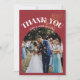 Expresar su gratitud y agradecer a sus huéspedes por su presencia y sus hermosos regalos con esta tarjeta de fotos de personalizable con un estilo retro rojo elegante que coincide con su tema boda. Sólo tienes que añadir tus fotos bodas favoritas (delante y atrás), cambiar los colores y escribir tu propio mensaje de agradecimiento.