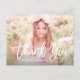 Envíe una moderna foto de un personalizado gracias por publicar una tarjeta a su familia y amigos por asistir a su fiesta de cumpleaños. Este diseño muestra su foto en la parte delantera con las palabras "Gracias" en tipografía con letras blancas con un nombre que personalizar. La parte de atrás tiene un mensaje de agradecimiento y firma al personalizar acentuado por un corazón purpurina falso rosa. Esta fue una alegría de diseñarte para ti. ¡Espero que disfrutes! Diseñado por Susan Coffey.