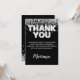Tarjeta de agradecimiento para fiestas de color negro y plata, esta es la colección de fiestas de cumpleaños de gracias por el melocotón y la plata, pero se puede usar como un agradecimiento por cualquier ocasión.