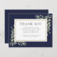 Una elegante tarjeta funeraria con vegetación de acuarela botánica en un fondo azul marino. Puedes personalizar con tu propio mensaje de agradecimiento. Diseñado por Thisisnotme©