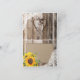 Madera granero, girasoles, encaje blanco y el corazón grabando gracias al diseño de las tarjetas.