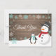 Navidades de invierno - Tarjeta de agradecimiento. Hombre de nieve y pingüino. Fondo De Madera Rústica. Barniz Retro Vintage del País. Copo de nieve Aqua. Amor y gracias, hermosa fuente de escritura. Añade tu mensaje al revés o deja en blanco y escribe a mano. Para más personalización, haga clic en el botón "Personalizar" y utilice nuestra herramienta de diseño para modificar esta plantilla.