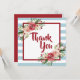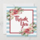 Navidades modernos Gracias diseño de tarjetas con flores de invierno acuáticas y fondo de rayas azules.