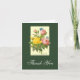 Una carta de agradecimiento personalizado en elegantes letras de guión con una reproducción antigua de hermosas obras de arte botánico rosa y amarillo rosado del famoso artista Pierre Redoute con pequeñas mariposas azules. Las flores están listadas en la obra de arte; rosas amarillas persas (rosa Lutea) y rosas rosados (rosa indica). Sobre un fondo verde cazador con un patrón de textura de lienzo. Haga clic en Personalizar para seleccionar los tipos de letra y agregar texto. Coincidir con este diseño: