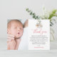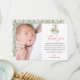 Comparte tu gratitud con estilo con esta tarjeta personalizada de agradecimiento. Con un frondoso borde de vegetación festivo, adorno de carrusel y ilustracion de pacificador, esta tarjeta es perfecta para enviar gracias después de su Merry Little Baby Shower. Añade tu propia foto y nombre familiar para crear un sentido amor que los invitados amarán.