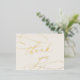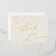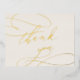 Esta tarjeta de agradecimiento romántica de Relieve metalizado dorado y marfil es perfecta para un boda sencillo. El moderno diseño clásico presenta vistosos remolinos y florituras con una magnífica y elegante tipografía con letras a mano en lujoso Relieve metalizado dorado prensado. La parte posterior está en blanco para que puedas escribir a mano un mensaje personal. Estas tarjetas se pueden usar para un boda, una ducha de novia o cualquier evento especial.