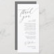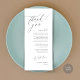 Comparte el amor y muestra tu agradecimiento a tus invitados cuando se sientan en su asiento y leen esta encantadora carta de agradecimiento personalizada. ¡Es una manera maravillosa de empezar tu celebración especial del día! Con esta tarjeta se establecerá el tono de un evento inolvidable. La tarjeta de agradecimiento incluye un tema moderno de diseño de guiones, añadiendo un toque de elegancia eterna a tu celebración. Diseñado por TeeshaDerrick