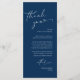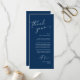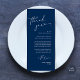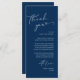 Comparte el amor y muestra tu aprecio a tus invitados, cuando se sientan en su asiento y leen esta encantadora carta romántica personalizada con temática azul marino. ¡Es una manera maravillosa de empezar tu celebración especial del día! Con esta tarjeta se establecerá el tono de un evento inolvidable. La tarjeta de agradecimiento incluye un tema de escritura de diseño moderno, añadiendo un toque de elegancia eterna a su celebración. Diseñado por TeeshaDerrick