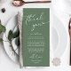 Comparte el amor y muestra tu aprecio a tus invitados, cuando se sientan en su asiento y leen esta encantadora carta de agradecimiento personalizada y romántica. ¡Es una manera maravillosa de empezar tu celebración especial del día! Con esta tarjeta se establecerá el tono de un evento inolvidable. La tarjeta de agradecimiento incluye un tema de escritura de diseño moderno, añadiendo un toque de elegancia eterna a su celebración. Diseñado por TeeshaDerrick