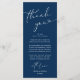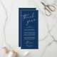 Comparte el amor y muestra tu aprecio a tus invitados, cuando se sientan en su asiento y leen esta encantadora carta romántica personalizada con un tema azul marino. ¡Es una manera maravillosa de empezar tu celebración especial del día! Con esta tarjeta se establecerá el tono de un evento inolvidable. La tarjeta de agradecimiento incluye un tema de escritura de diseño moderno, añadiendo un toque de elegancia eterna a su celebración. Diseñado por TeeshaDerrick