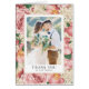 tarjeta de agradecimiento floral de personalizable con ilustraciones vintage de peonías rosadas e hidrangeas de marfil. Esta elegante tarjeta de agradecimiento fotográfico será perfecta para bodas, graduaciones y otros eventos.