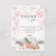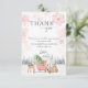 Esta ducha de bebé de chica rosa de los bosques de invierno, tarjeta de agradecimiento, coincide con la colección de invitaciones Baby It's Cold Outside Woodland. Incluye "Gracias" en tipografías lindas con tu mensaje de agradecimiento. Los dulces acuáticos animales de bosque en un trineo rodeado de árboles montañosos y copos de nieve seguro que encantarán a todos.
