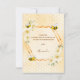 Tarjeta de agradecimiento para una despedida de soltera de verano. Fondo amarillo, blanco con un patrón de panal de abeja. Con un marco geométrico de falso oro. Decorado con flores tropicales de color amarillo claro y crema, hibisco y abejas felices. Con el texto: Gracias y Novia Abeja escrito con una tipografía moderna a mano. Plantilla para el nombre de la novia y la fecha de la celebración. Letras marrones.