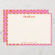 This baby shower thank you note features a soft cream front framed by a playful pink and orange checkerboard border with clean serif typography. The warm, modern color palette feels cheerful and polished while leaving plenty of space inside for a personal message. Designed to coordinate easily with colorful and contemporary baby shower themes. Personalize the name to create a thoughtful, cohesive way to thank guests after the celebration.