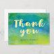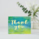 Tarjeta De Agradecimiento Acuarela Azul Verde Caligrafía Gracias