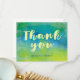 Envía agradecimientos a tu familia y amigos por ser parte de tu día especial con esta hermosa tarjeta de agradecimiento. Cuenta con un encantador fondo de acuarela en azul y verde y letra caprichosa. Esta tarjeta de agradecimiento de boda también será perfecta para uso personal y otras ocasiones como fiestas de compromiso y graduaciones. Personaliza añadiendo nombres y mensaje.