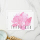 Funeral, tarjeta de agradecimiento de duelo. Nombre de la familia y gracias por la espalda. Tipografía. Fondo floral color de agua rosada.