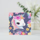 Tarjeta De Agradecimiento Adorable Unicornio Blanco Bebé con Flores