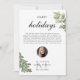 Un hermoso diseño de pino que incorpora 1 de sus propias fotos y su código QR. Esta elegante tarjeta de vacaciones para Navidades inmobiliarios es ideal para todos los inquilinos que contacten con sus propietarios durante la temporada de vacaciones. Una forma sencilla y profesional de promocionar su negocio y dar las gracias a sus clientes. Una tarjeta de Navidad perfecta para agentes inmobiliarios, corredores, etc. Personalice sus detalles para crear su propia tarjeta de visita única.