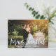 Una hermosa imagen de los recién casados con texto de moda. La imagen de la novia y el novio y el color de fondo y el texto se pueden personalizar. Agregue un mensaje de agradecimiento personal y puede subir su propia foto.