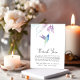 Una elegante tarjeta de agradecimiento para funeral y memorial que presenta una ilustración de acuarela de un colibrí y flores, y "Gracias" en un guión de estilo manuscrito. Personalice su mensaje de agradecimiento y el nombre de su ser querido y las fechas de nacimiento y muerte.