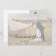 Tarjeta de agradecimiento de boda fotográfico moderno que presenta un diseño sencillo con "amor y agradecimiento" en una tipografía de escritura de estilo rústico junto con sus nombres y fecha boda sobre su foto favorita con un overlay opaco. Esta elegante tarjeta de agradecimiento con un diseño minimalista es ideal para cualquier estilo de boda.